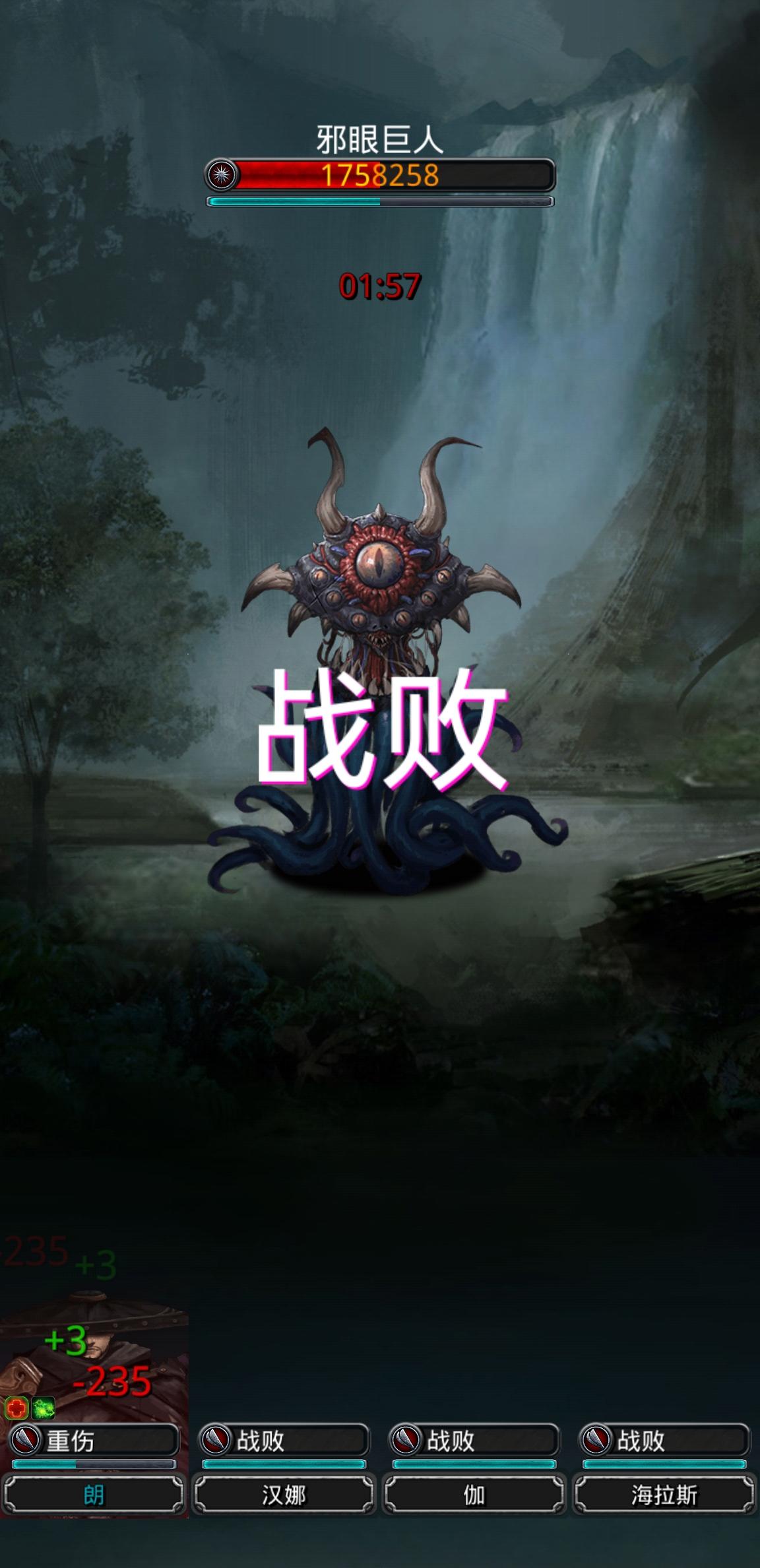 相对于狂魔+龙杖+魔影,这一套配装稳定性低但是实际上通过率高,因为前者特效概率太高很难控血线,一般斩杀线区间就在一万左右,十分难调,用剑豪磨血就很容易导致两分半只够打一次,效率打了对折。这一套火法剑豪要求不变,就是赌魔影特效,蛮子这方面是大头,只要出了2个任意特效,斩杀区间从59-61提升到59-70,特效越多斩杀线越高,所以可以在61左右就三人出手,不需要进一步微调血量了,每次都能打满两轮,如果