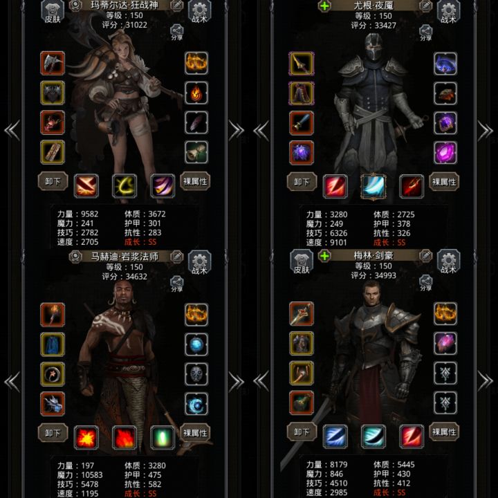 属性如上图,我的神官奶量比较低,只有1.1万,单攻后给黑骑回血速度比不上传法加血速度导致传法奶三次之后黑骑血量低于奶线,进而继续奶导致群攻后暴毙。所以这里设置传法和神官100%队友,其他全关,魔将单攻后神官自动,只手动捏住传法不要奶四次,群攻前捏住神官不要奶,群攻瞬间传法自动奶,神官随后手操奶黑骑直到满血,魔将单攻后再次自动转而捏传法,循环。