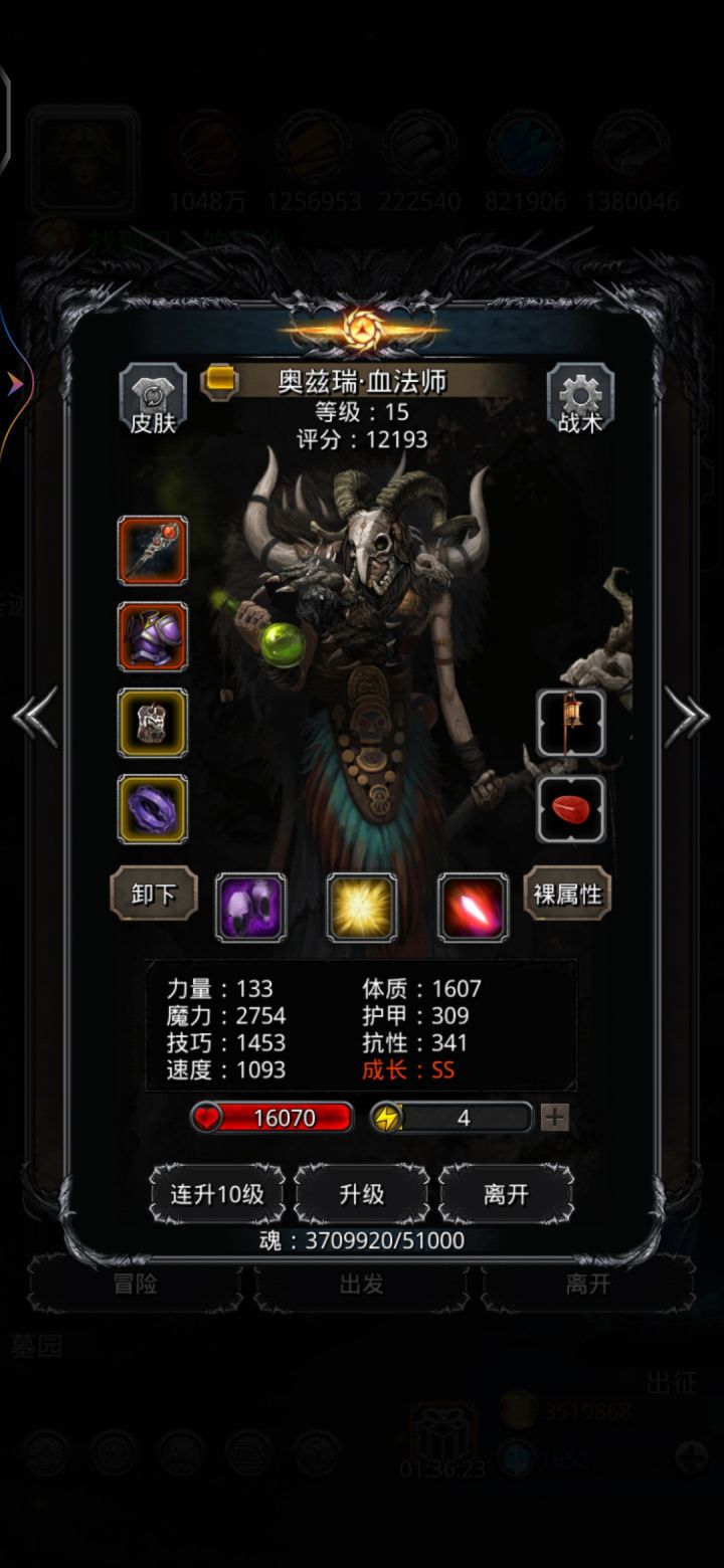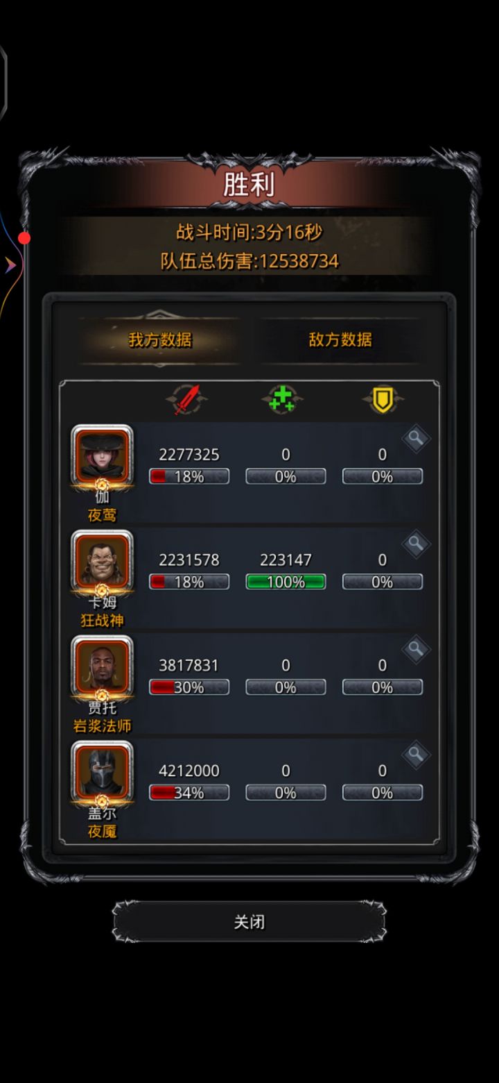 4分36秒结束战斗,整体属性达标黑骑不用管。锻造87,遗迹最高56,骑士才42。打法跟wiki上一样,只是将剑豪换成黑骑。1.黑骑带61盾及回血甲,体力及防御越高越好,一10吸和体先发。开嘲讽和虚弱,偶尔需要神官奶一口,我基本没奶过。2.主神官带影兽,技巧堆得越高越好,这样法师可以降低血量和防御,主堆魔力和命中,可以古精灵洗命中。计算法师需要最终血量(277200✖️50)➗防御力(神官bu