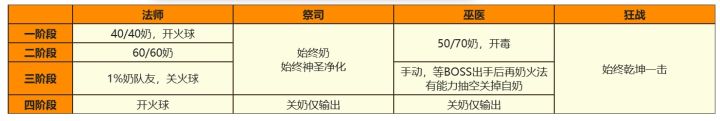 俩法师不开加血只开单攻生命最少,骑士全程嘲讽90自己80队友不攻击,祭祀100奶不开攻击,调好血,祭祀最少然后是骑士俩法师最多,这里有一个翻车点就是骑士血量和祭祀接近三分钟BOSS吃滴一个人的时候有可能会吃掉没满血的骑士要是骑士被吃了冰法就要手动晕对面的血法了要不容易翻车打第一次的时候就是这样翻了,只有冰法没流血甲然后被流血死了。。。我一看输出不够了就卖了,重新打这次第一个被吃的是祭祀就把过了