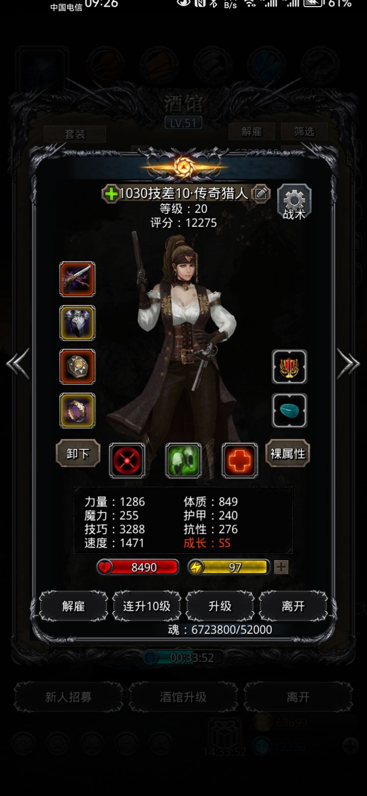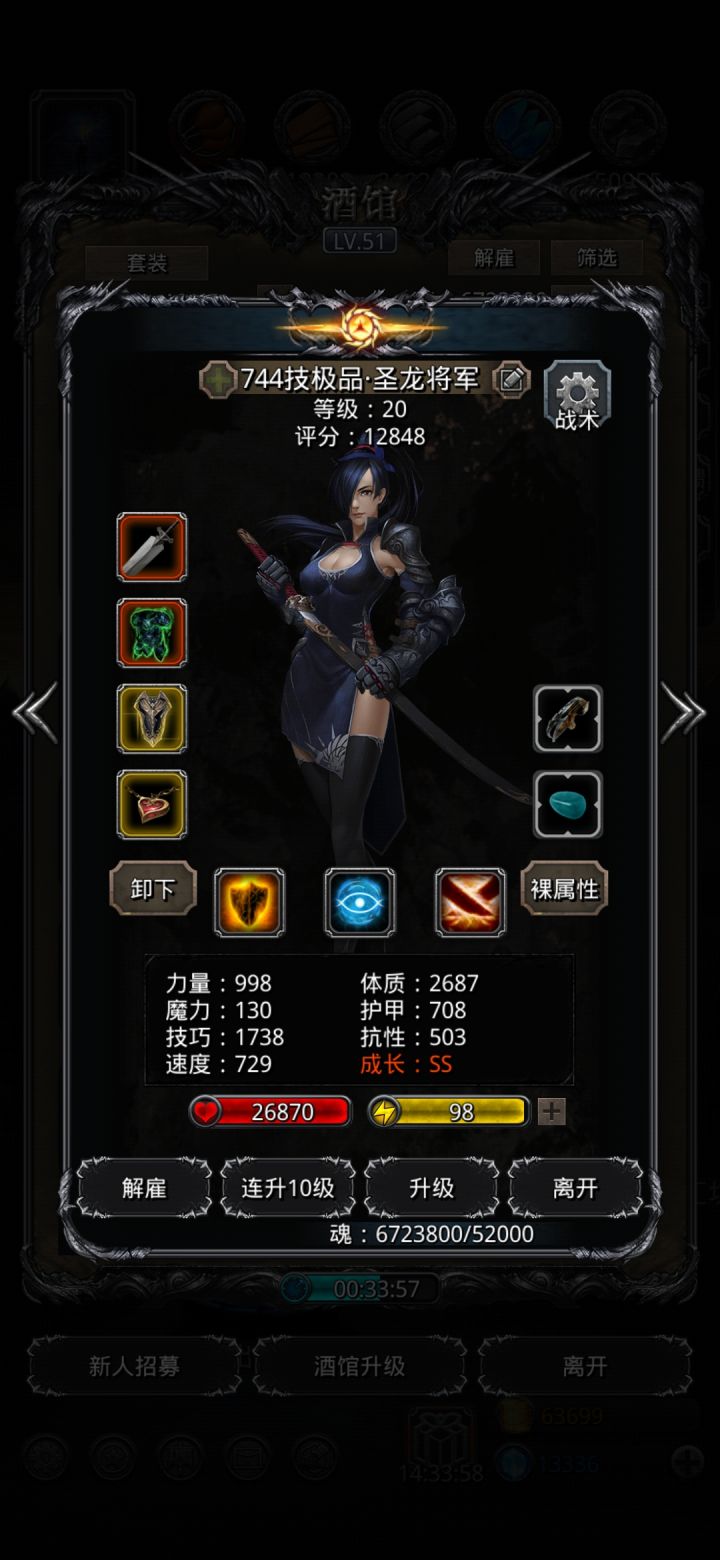 参考这位大佬的装配,我本人是高配,结果还过不去,打了56次,后来第28次过了。我在这里只说注意事项,其他的参考链接里的配置即可。注意事项:夜莺命中务必堆到50以上,越高越稳,魔石洗成命中12%以上,技巧最好超过80%技巧。夜莺技巧超过5400最佳,越高越稳划重点:夜莺的力速比一定要大于0.5,记住是大于0.5,否则就算技巧6000,也未必能过,看大佬的帖子,我夜莺6010的技巧,命中51