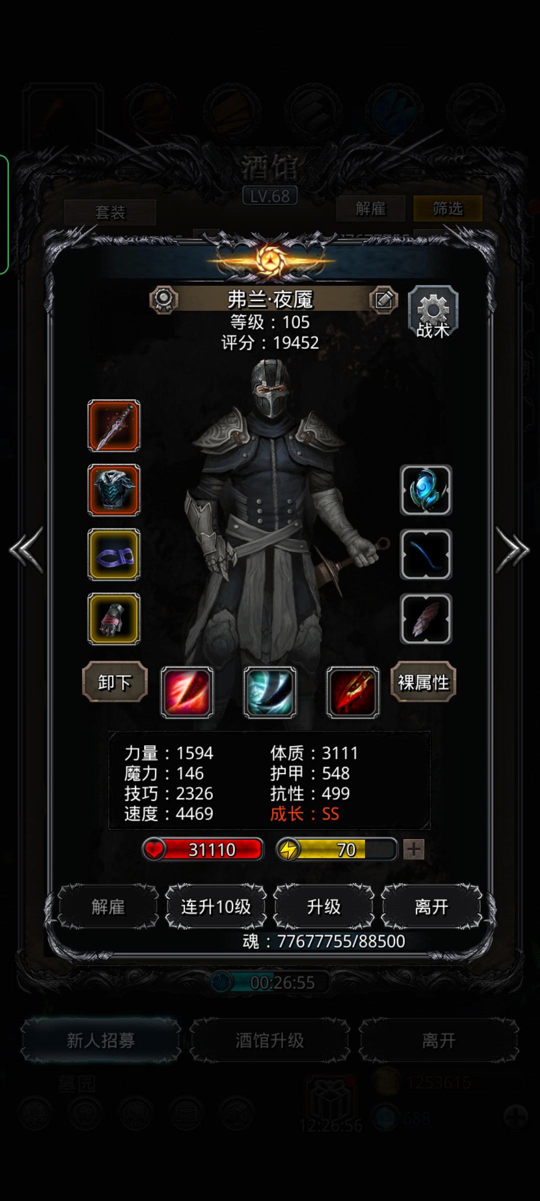 之前用的剑豪双10单吸加兽戒都频繁暴毙,尝试了一把剑魔,发现剑魔一波可以打三次,妥妥的能吸满血,注意力速别太高就行。第一把血法全程吸血剩24万没打死,第二把改成蛛网吸血轮流释放,一回合能打四次两次吸血也不会暴毙,第二把4.40+就过了,独裁圣枪主要效果是全员满暴击满命中,也跟巫医增加一点回复量。秒回2300+左右 操作方法巫医轮流奶自己和圣枪血法蛛网和吸血调成经常释放有个细节当你感觉剑魔在