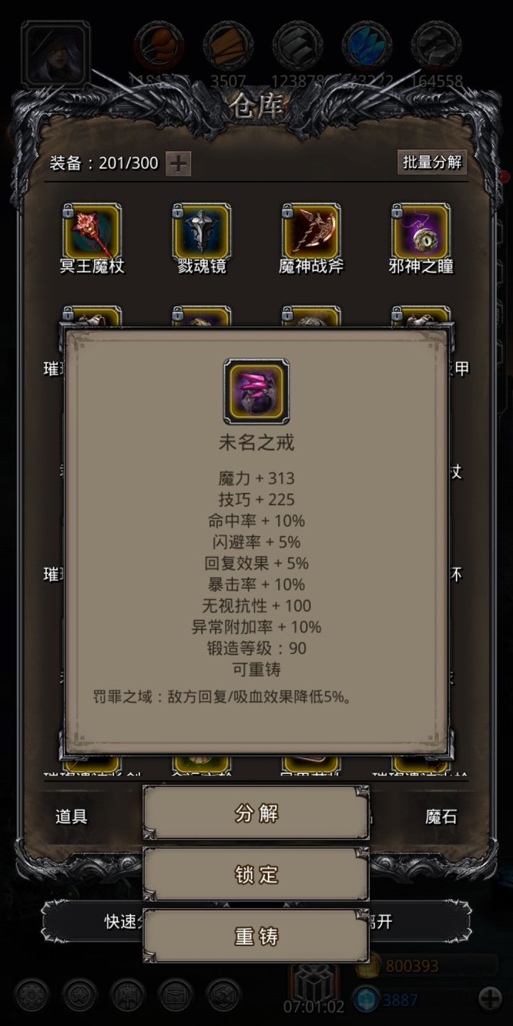 拼运气,买了3次精力,也就是第6次过了剑豪特效5.8w,火法1.6-2.1剑豪战利品吸血5.7锻造99