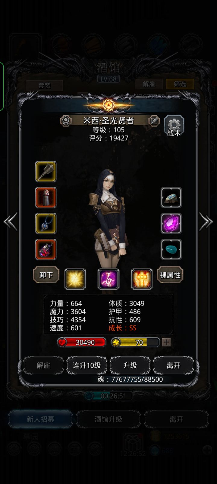之前用的剑豪双10单吸加兽戒都频繁暴毙,尝试了一把剑魔,发现剑魔一波可以打三次,妥妥的能吸满血,注意力速别太高就行。第一把血法全程吸血剩24万没打死,第二把改成蛛网吸血轮流释放,一回合能打四次两次吸血也不会暴毙,第二把4.40+就过了,独裁圣枪主要效果是全员满暴击满命中,也跟巫医增加一点回复量。秒回2300+左右 操作方法巫医轮流奶自己和圣枪血法蛛网和吸血调成经常释放有个细节当你感觉剑魔在