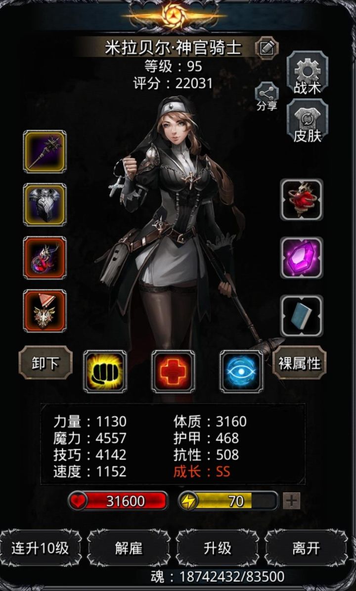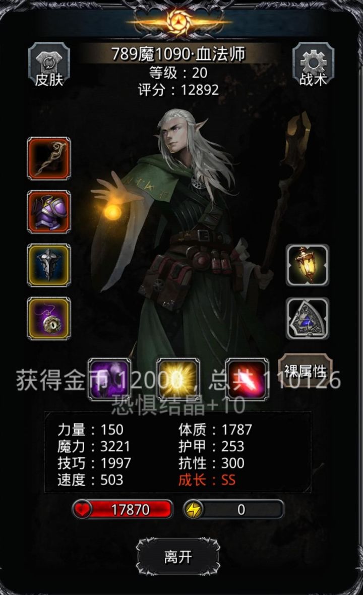 夜魇另类配装(需光匕)只能高属性使用(好战利品,装备锤的可以)。其他配装后续会附评论区。过关配置:装备锻造90-100均有圣迹刺客60,法师69,圣职62.巫医奶人顺序自己—教宗—夜魇。带先发血法夜魇默认攻击最低。教宗始终奶。噬魂是魔攻夺魂轮流攻击。第一击夺魂不用打了,巫医先发也奶不回三个人抗住下一击魔攻。血法不带速免疫,出手速上限最久是6秒。噬魂魔攻减10700血。魔攻出手5