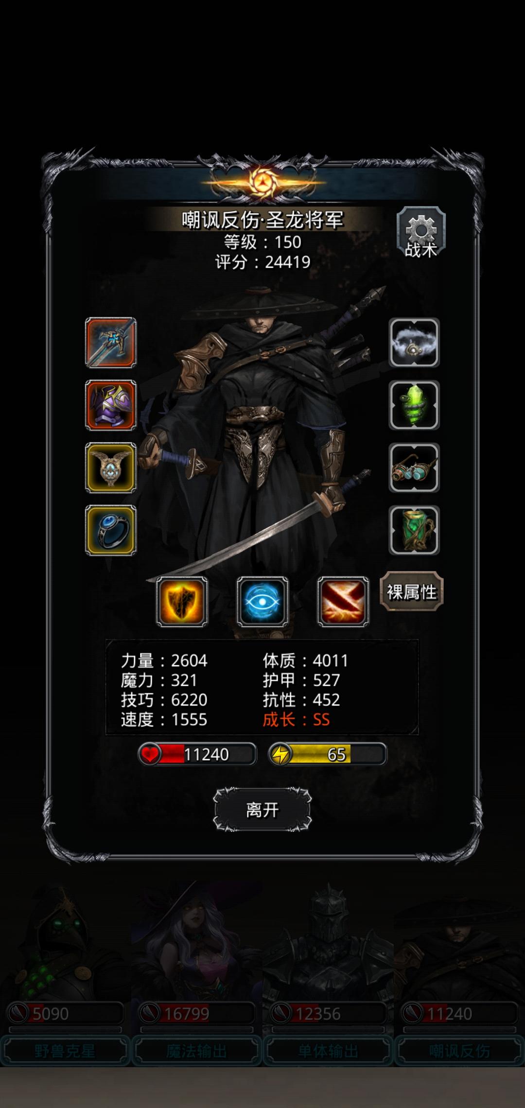 图29噬魂巨蜥,无光炮3.5个输出,两个力量技巧空环10%伤害,两个保底环10%、20%伤害。没光炮的我拿夜魇差两百多万伤害,想了想圣龙能不能秒回3500顶住,结果发现还不错,反击伤害也很高,还能出流血甲特效,开反击前火法还可以奶一口