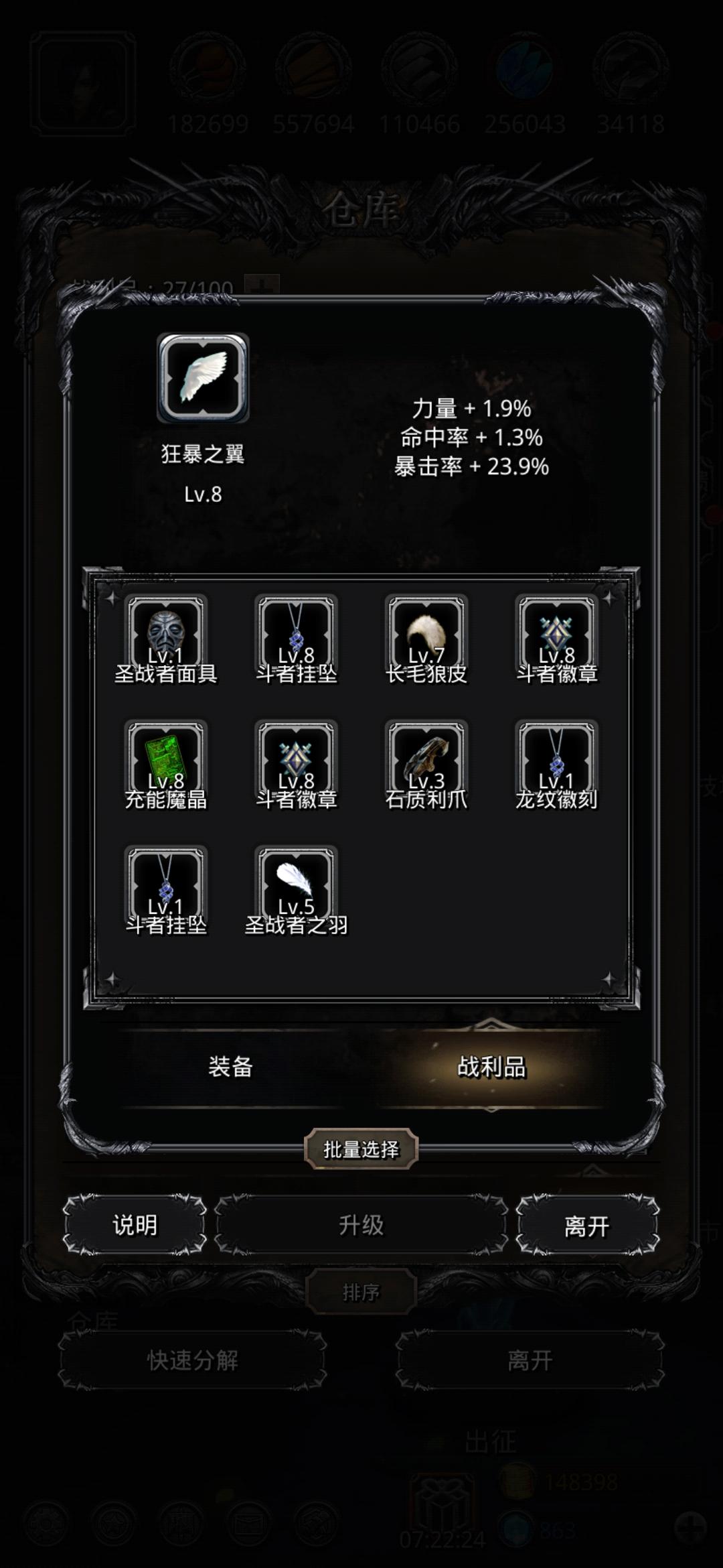 刷了得有几十个黑暗水晶了,wiki和攻略帖子都看了好多,要么小怪血压不住,要么boss伤害不足,配置够的情况下,其实还是是操作问题,综合这些大佬给出的攻略,稍微改了下思路和打法,个人觉得还是有效降低了一些操作难度和刷脸程度。下边给出配置打法思路先说配置圣迹魔蛮祭都是80,刺客70,满锻,魔石均15命,人物等级均115(这里估计大多数人的圣迹和等级都比我高,因此配置中的大量氪金战利品换成自刷战利