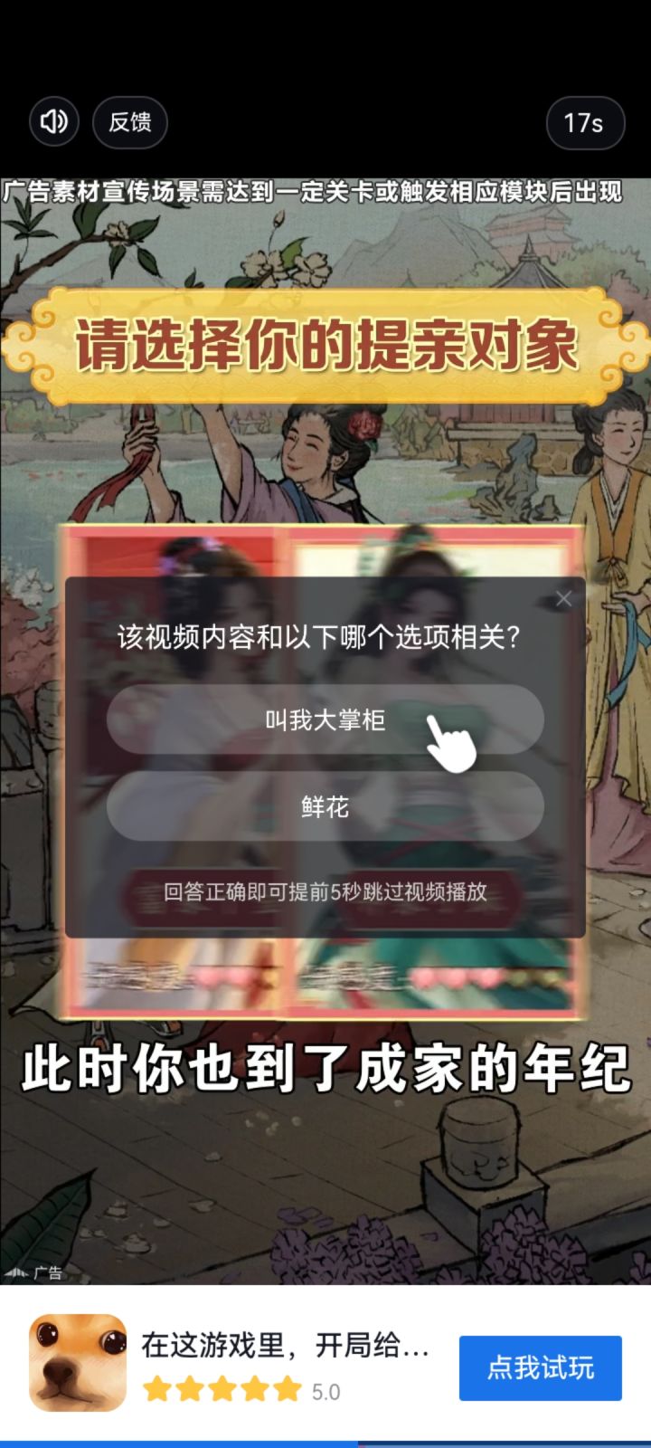 能不能把这个恶心人的选项删掉,我缺这5秒吗,等我❌完都不止5秒了,除非你直接跳过