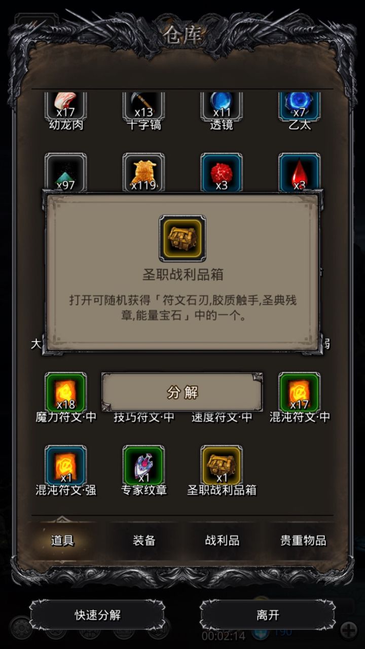 巫医的魔石和战利品不做任何要求。独裁魔石和战利品尽量挑技巧高的,优先满足虚空的技巧之后才是独裁最后是圣龙。需要3个防晕注意:虚空要等圣龙嘲讽了再挂减力,不然boss力速比会变非常低,很容易在圣龙嘲讽前点死人,或者圣龙带先发。独裁要站第一个,巫医按虚空-圣龙-巫医的顺序奶就好了。基本上8分钟左右就可以结束战斗了