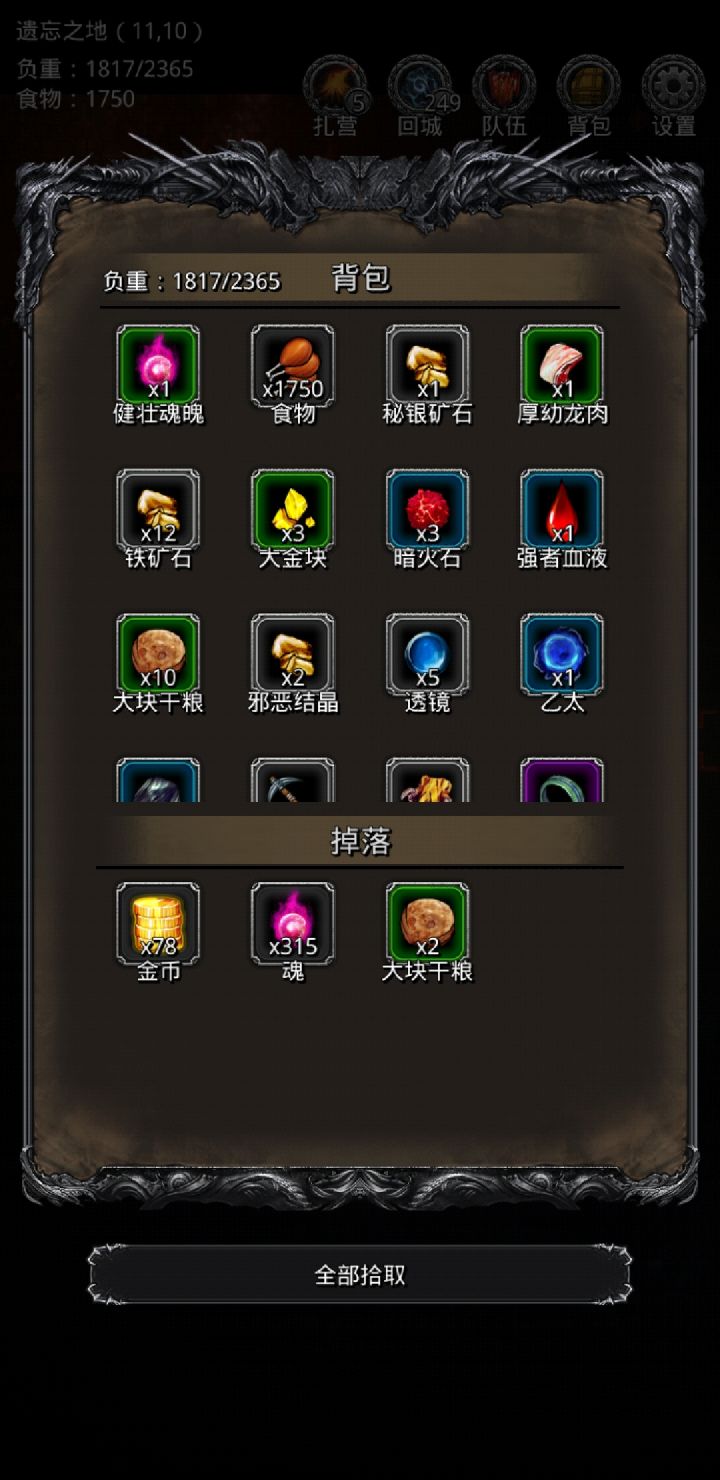 目前的战后结算界面分为《背包》与《掉落》两部分,背包占3.5排,掉落占两排。希望可以改成从上往下依次为《统计》《掉落》《背包》三部分。统计占三排左右,至少要有承伤、伤害、治疗这三项,也可以考虑用黄红绿三色横柱来直观表现。掉落占1.5排左右,掉落下面是《全部拾取》。最下面是《背包》,背包一来可以滚动查看,二来用户根本不在意,只是一瞥而过,所以既没必要放最上面也没必要占大空间,改成1.5排可滑