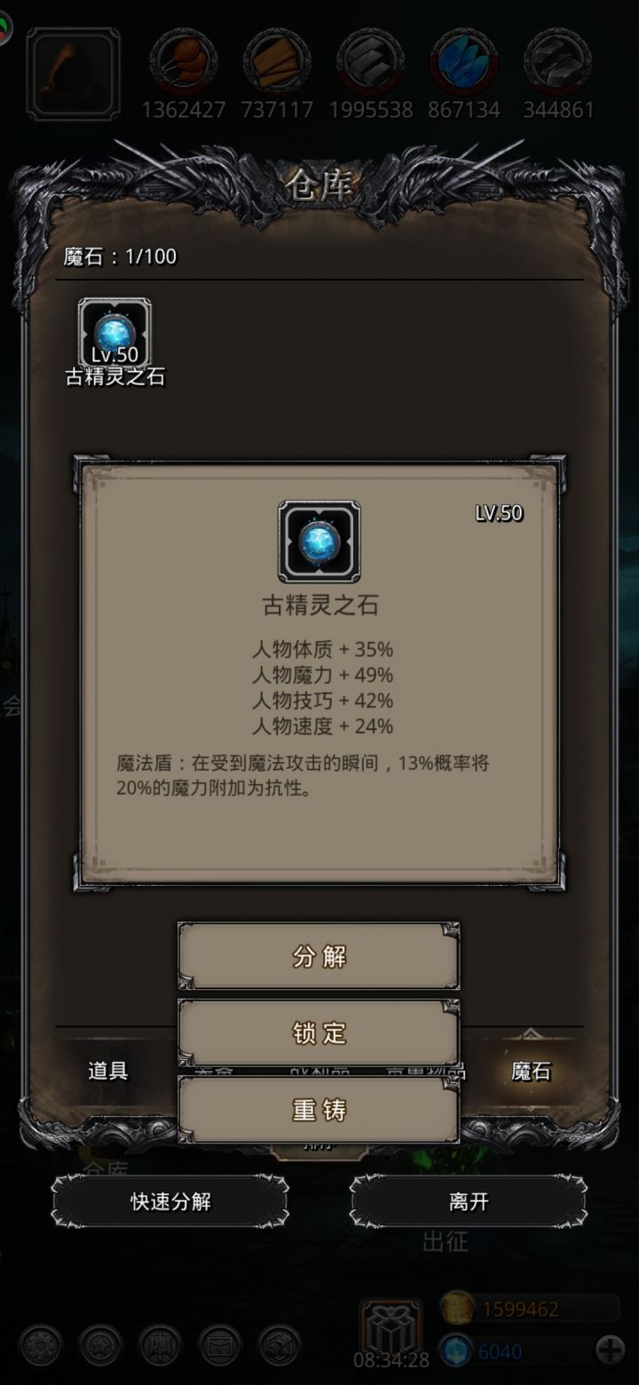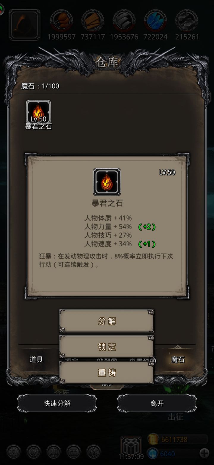 我这魔石算是天崩开局?是不是肝出来的魔石都很垃圾???现在还有260万金币跟38个红石今天在肝一次!下一个换那个好。技巧还是暴君啊