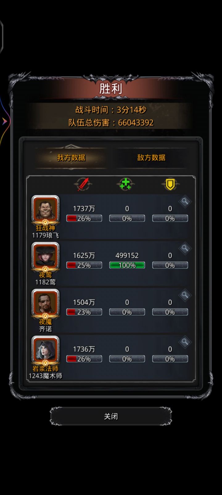 战利品技巧没有一个10以上的,那就需要火法奶来凑技巧,火法,夜莺,魂贤都带先发,这个配装是手残党的福音,最好操作了,唯一注意的是夜莺魔石要带异常,但仍然可能挂不上,但是圣戒火法的伤害是不输攻击多少的,关键是它是群攻,能打两只,所以夜莺即使偶尔挂不上也不要紧,只要不是太黑就能过。开局火法百分百奶,统领枪放生,夜莺13技能就行,没必要开局连击,到时候改的时候你忙不过来的,除非30年手速,因为减速技能