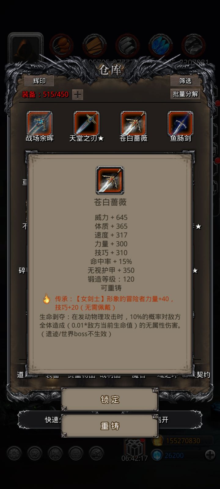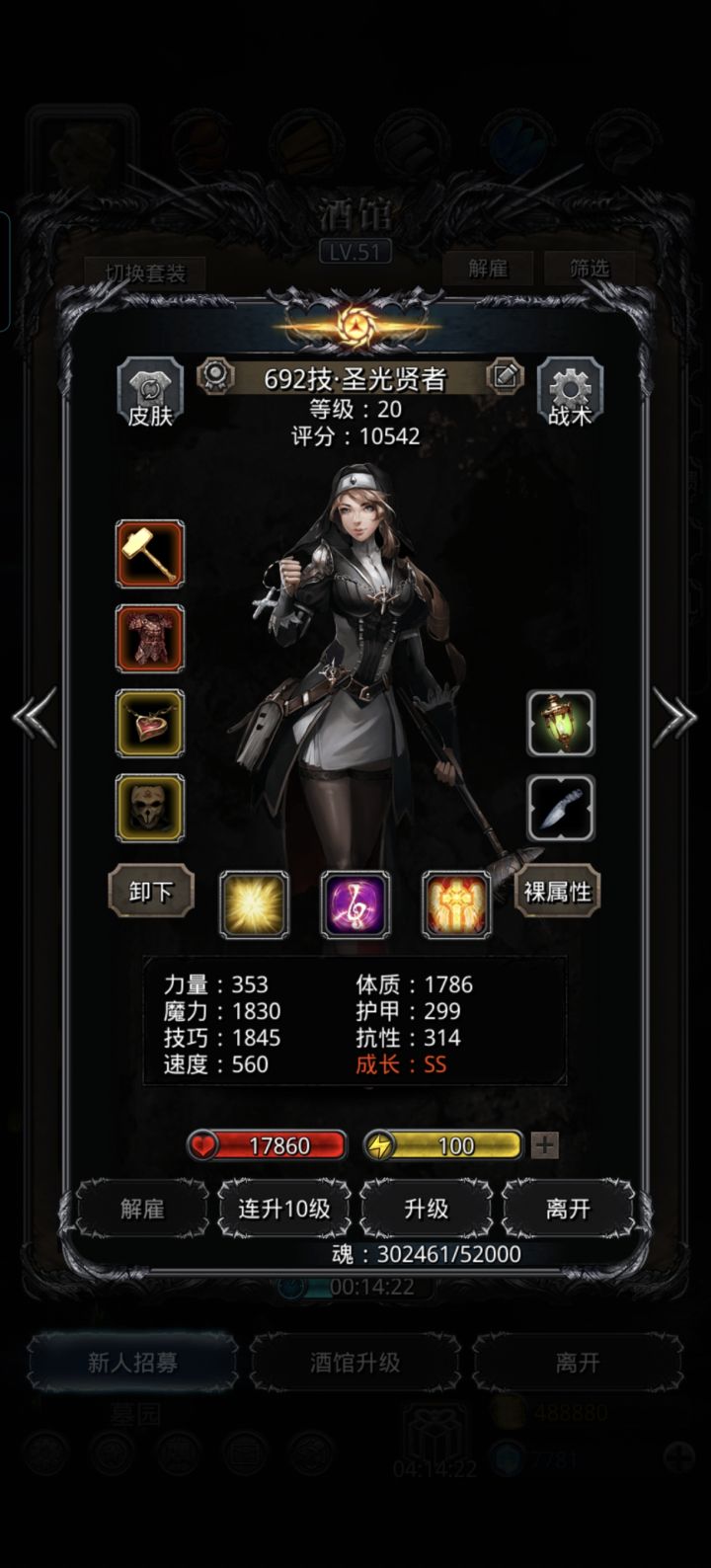 神官没有技先发,圣龙不是护甲过高就是过低,无限制治疗体技水环也换不出来,搞的二人环,没办法,始终差20万伤害,于是就去刷铁甲片,事实证明体5护甲5体这种垃圾战利品也是有它的用处的,588护甲6万血也能抗住,高技巧战利品也刷不出来,全身没有一个10以上的,圣枪神官也是刚及格,如果等技先发的话我还要等三个多月今天唯一值得高兴的是刷低护甲铁甲片给了一个纯粹的14体铁甲片。数据做一个参考