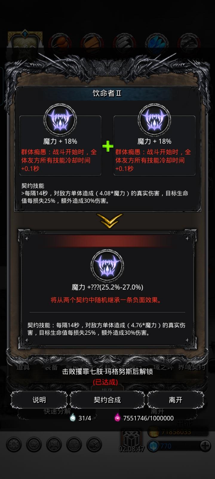 由于没有升战士和枪手的柱子,圣枪只有2800的技巧,圣龙也只有1400的技巧。导致最后头血量总是越奶越多,无奈做了根神权。后来发现抑制是上去了,但是51的奶量和身板不够,导致根本站不住。最后不得不把圣光的战利品换成回复效果和魔力,自废300多技巧才终于磨死了。