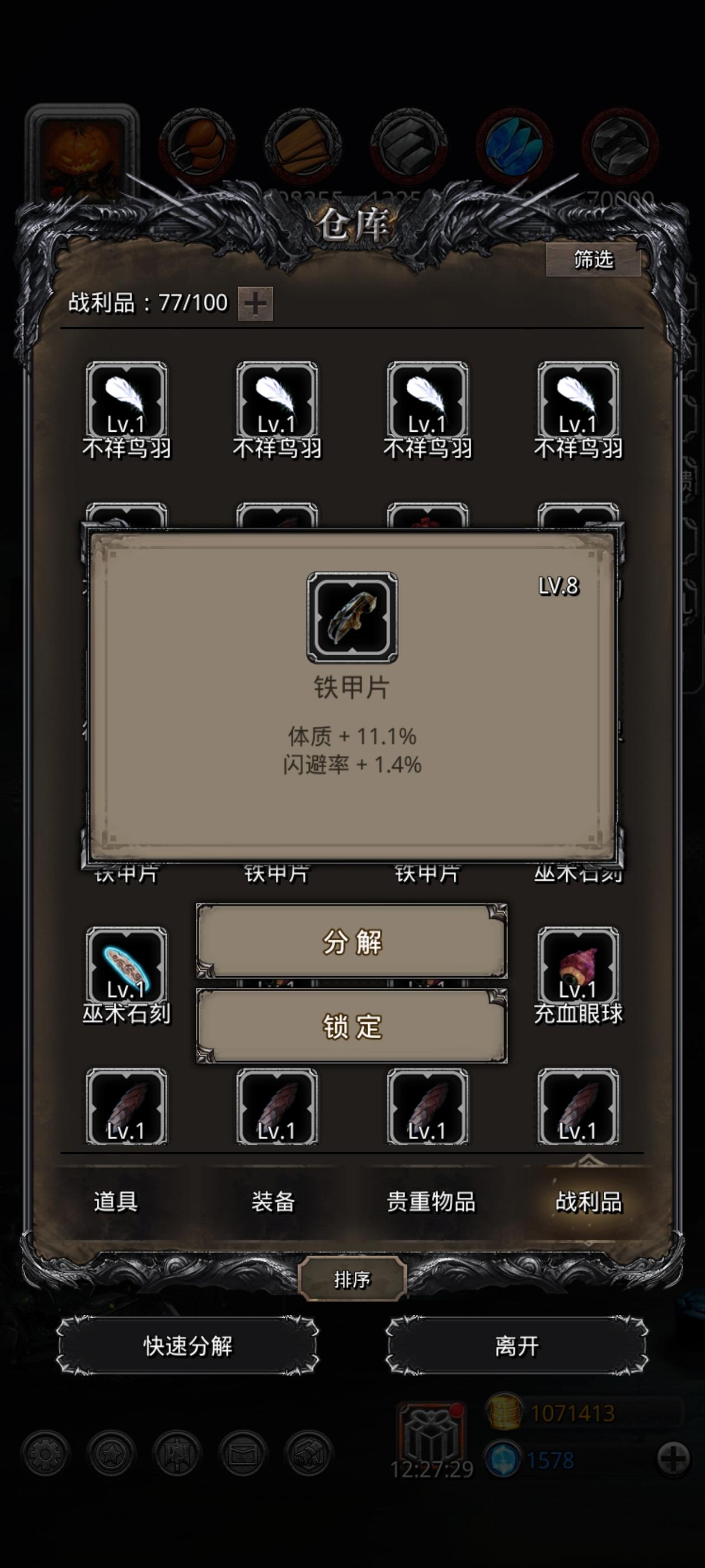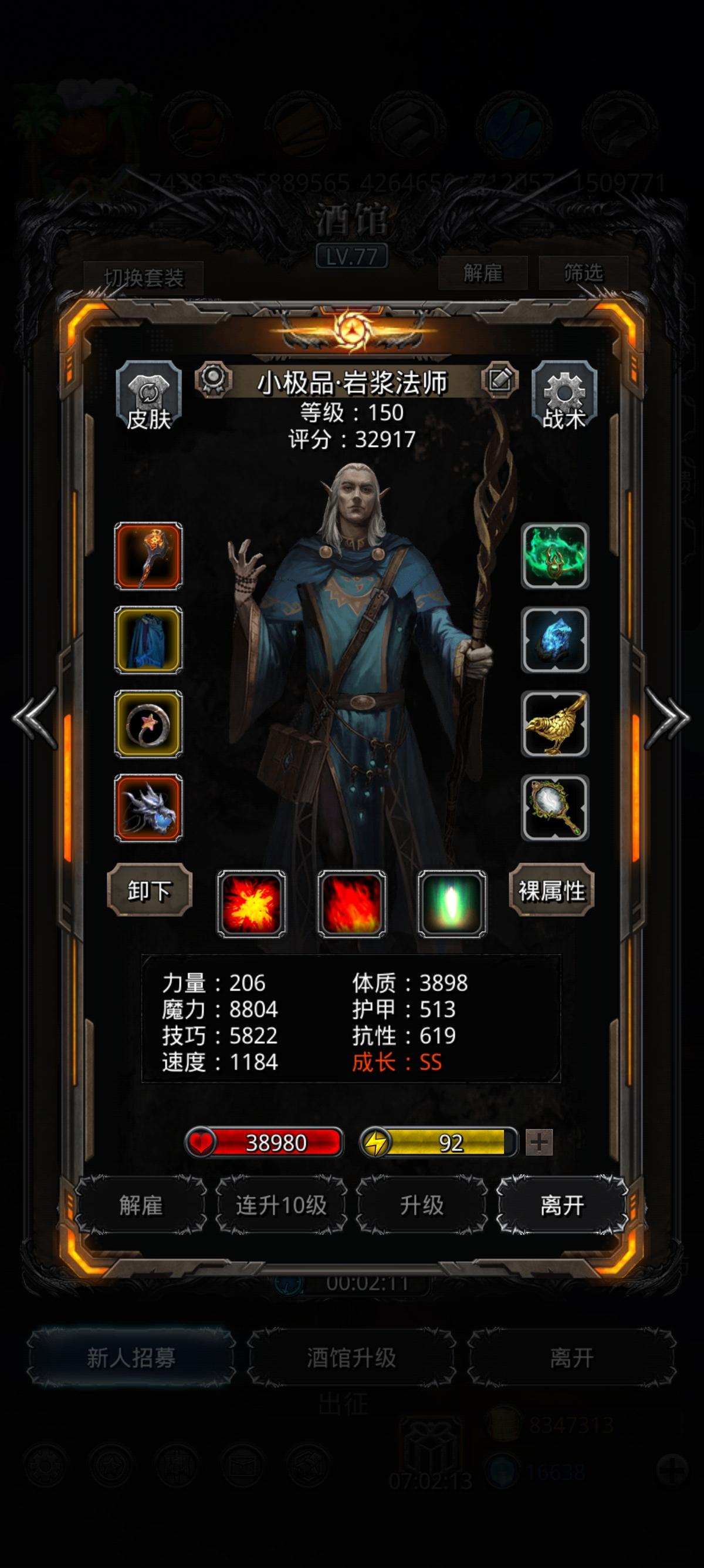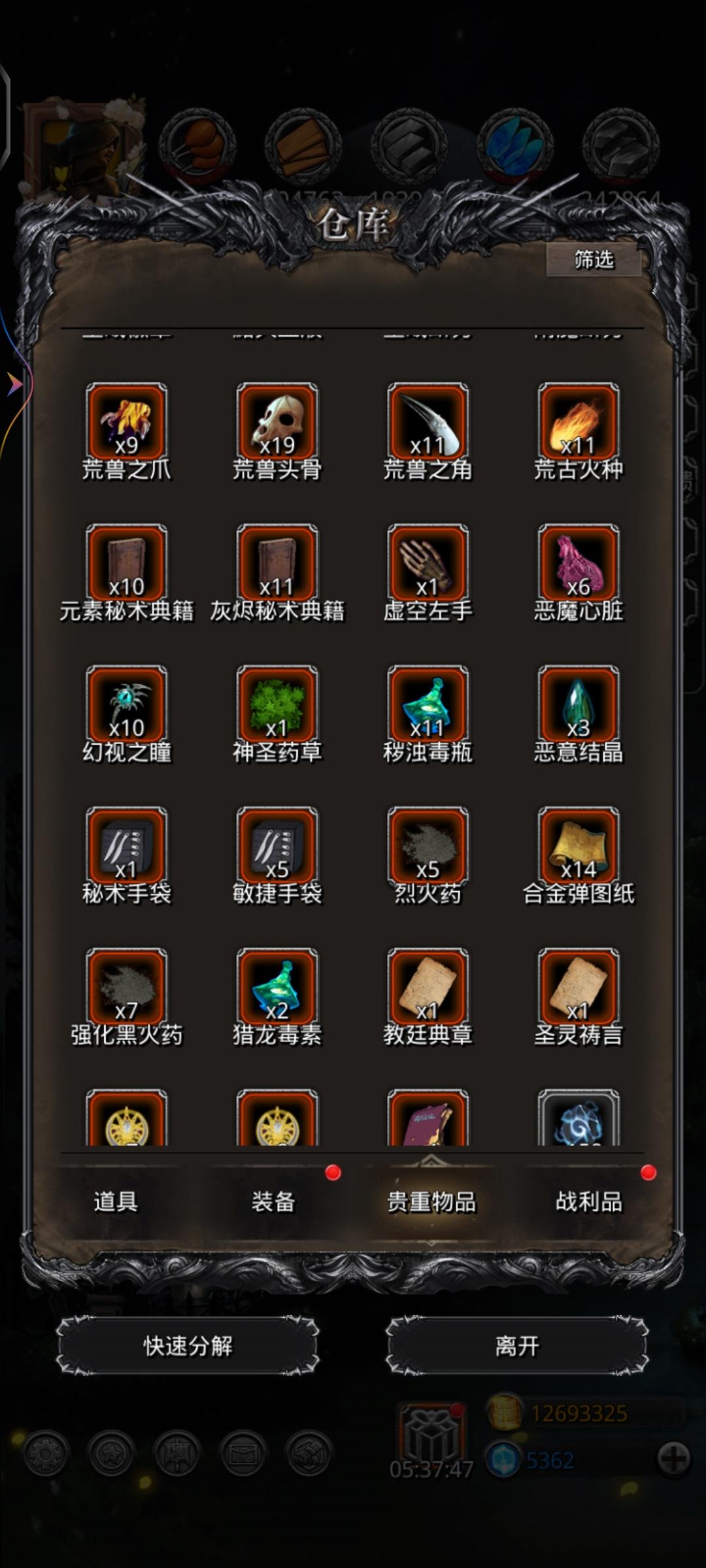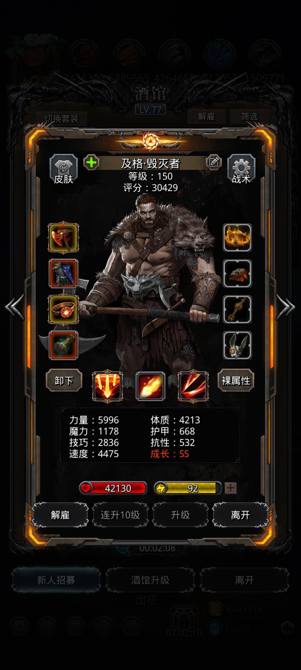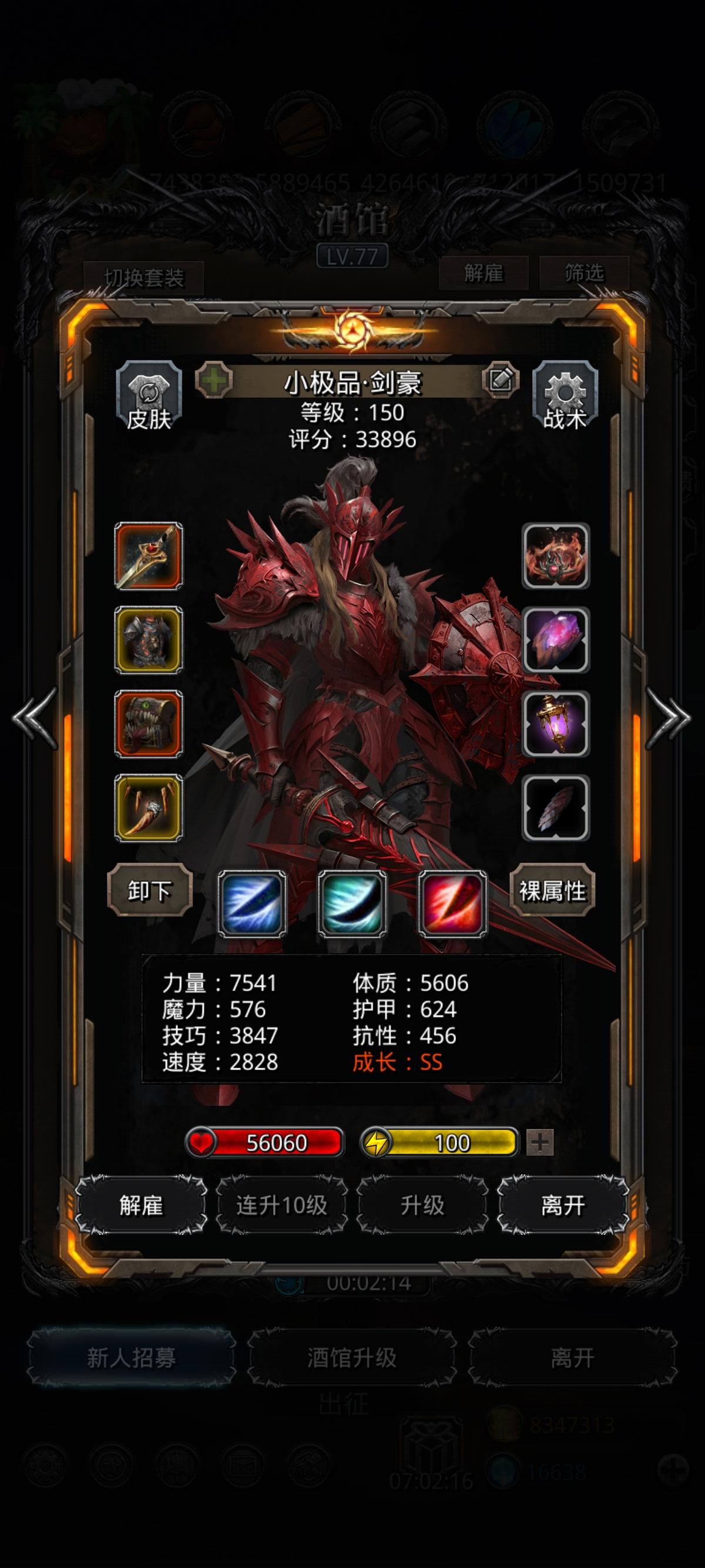 剑豪最后该出特效的时候一点也不含糊,极限一刀带走巨镰,感觉吃人顺序很关键,如果把毁灭留到最后应该扛不住,剑豪血量高的多,有容错,我的吃人顺序是火法-夜魇-毁灭,剑豪最后砍死了boss,看的是wiki109裂隙的那个攻略,如果有堡主卡图的话建议先去裂隙109拿猎魂匕 配置如图,除了蛮子的环是自升的,过了保底环一点点,其他环和石头都是保底的,战利品的话氪金比较多 圣迹全满,魂圣迹545,锻造全满,