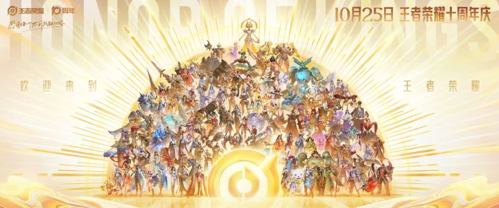 10年间,我们同他见证了124位英雄登上王者峡谷,无论是2015年的首发英雄们,还是新相识的空空儿、孙权、蚩奼,他们都不再只是屏幕中的虚拟身影,而是成为了我们倾注热爱的“本命英雄”。十周年之际,每位英雄都像一颗独特的星辰,闪耀着属于自己的光芒,当他们站在一起,就是王者荣耀最好的标识。十周年之际,全英雄集结,齐声高呼“欢迎来到王者荣耀”,感谢每一个不可或缺的你!10月25日,王者十周年庆,让我