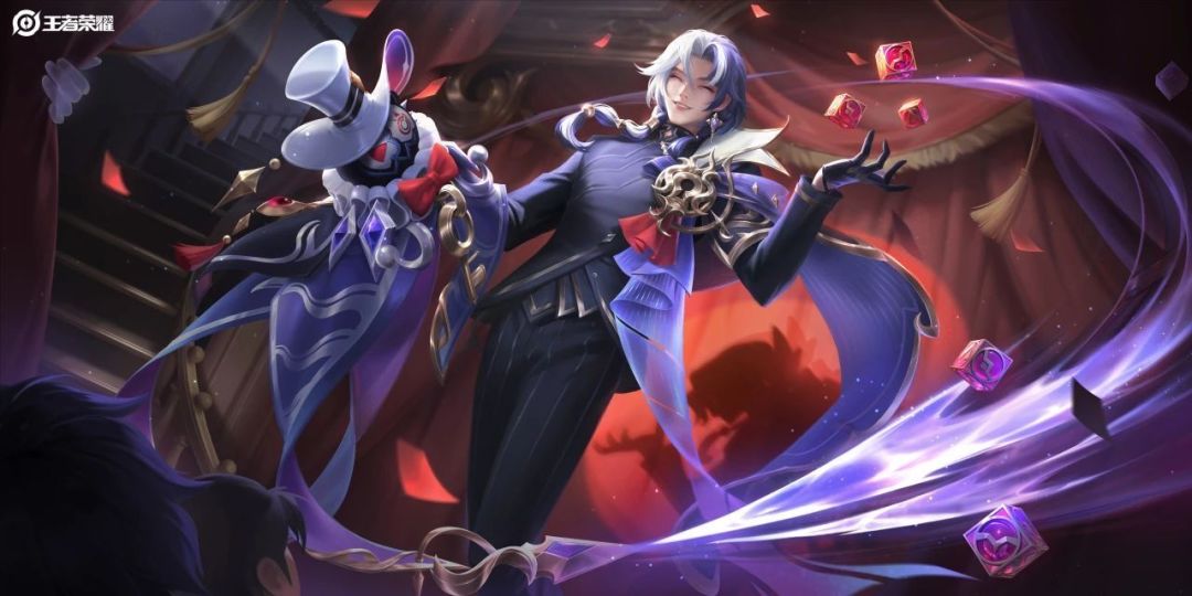 空空儿新皮肤【戏梦巡演】即将上线!空空儿化身为高贵神秘的宫廷魔术师,为观众带来一场精彩的戏剧演出。好戏落幕,但故事才刚刚开始!【角色设计】空空儿化身为一位帅气神秘的宫廷魔术师,身着精致裁剪的黑紫色西装,搭配半透明的渐变紫纱披肩,营造出华贵而神秘的氛围。红宝石与金属饰品则形成抢眼的撞色,隐喻背后暗藏的危机。长发辫以金属装饰束起垂于胸前,胸前的锁孔纹样胸针与手偶悬挂的钥匙形成呼应。服饰设计上,