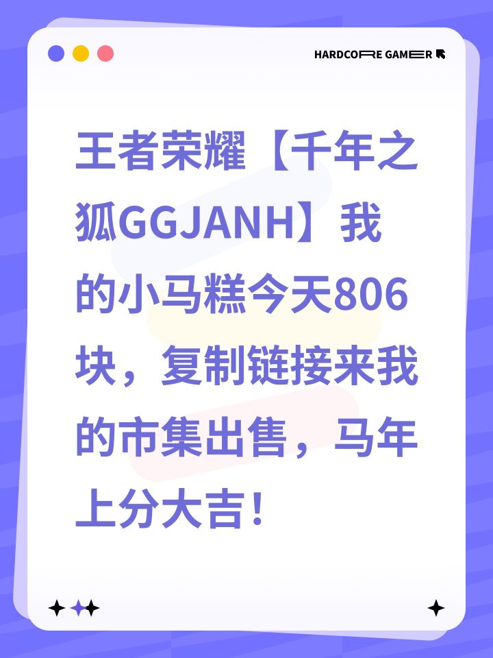 王者荣耀【千年之狐GGJANH】我的小马糕今天806块,复制链接来我的市集出售,马年上分大吉!