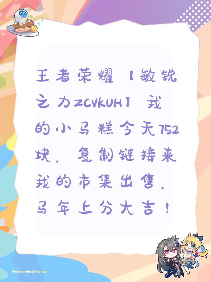 王者荣耀【敏锐之力ZCVKUH】我的小马糕今天752块,复制链接来我的市集出售,马年上分大吉!