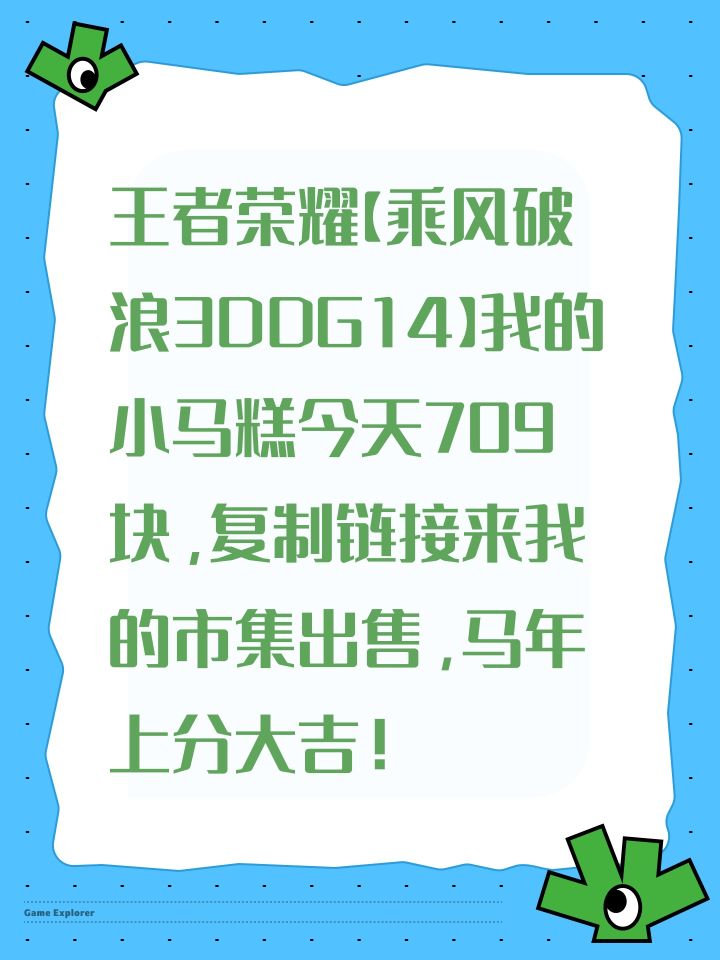 王者荣耀【乘风破浪3DDG14】我的小马糕今天709块,复制链接来我的市集出售,马年上分大吉!