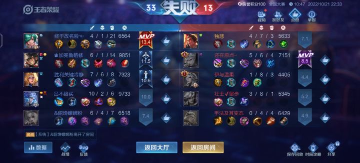 从头就开始不想好好玩,没见过蒙恬打野,就一个劲说我低分仔,我也没骂他,他还一个劲儿说,跟他说不想跟他一般见识,骂的没完没了,而且有几波站着看着我死,唉,求求你们看一下蒙恬的出装吧,真的有打野认可的那一套,而且前中期非常强,压塔也非常强,因为前期野区被反烂了,他也不帮忙守,导致这把输了,梦琪直接带着项羽反我红,先打个蓝被海月抢了,开个二技能蓄力一枪没拿到,惩戒先交了,蓝丢了,回到红区,一个项羽,一个梦琪加一个中单,直接把我收了,一血白给了,我点了好几遍集合,这辅助还在中路一呆,一个劲儿说他有多强多强啊,看看他鲁大的分,看看他梦琪的分,看到了两个全国以上的,但是一点素质也没有,有什么用呢?他要好好打能赢的,不好好打了,看着我死了好几波,看他拿了我方败方MVP,好几波让给队友链子拉过来之后,让队友也跟着去死,啊,这就是全国的理解,那我分可真低呀,而且他还添油加醋啊,我没说自己分有多高,一个劲说我低分仔,好像他有了两个全国标之后,看谁都是低分仔吧?就这么破的巅峰环境,没有办法去赢