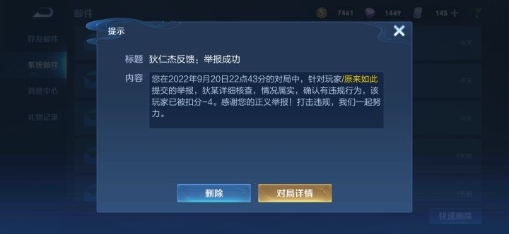 本赛季第1局巅峰赛,就能够举报成功,真不错~而且还是举报对面的,虽然是我输了~但是我0死!还弄得对面被举报、打不了巅峰赛~我可真是个大人才!!😎👍巅峰赛米莱狄——巅峰赛吗?举报真好玩儿~ - TapTaphttps://www.taptap.com/video/2943325对应的视频在这儿~。。。然后,旧的打排位的举报的楼:S28赛季,新的举报楼!! - TapTaphttp