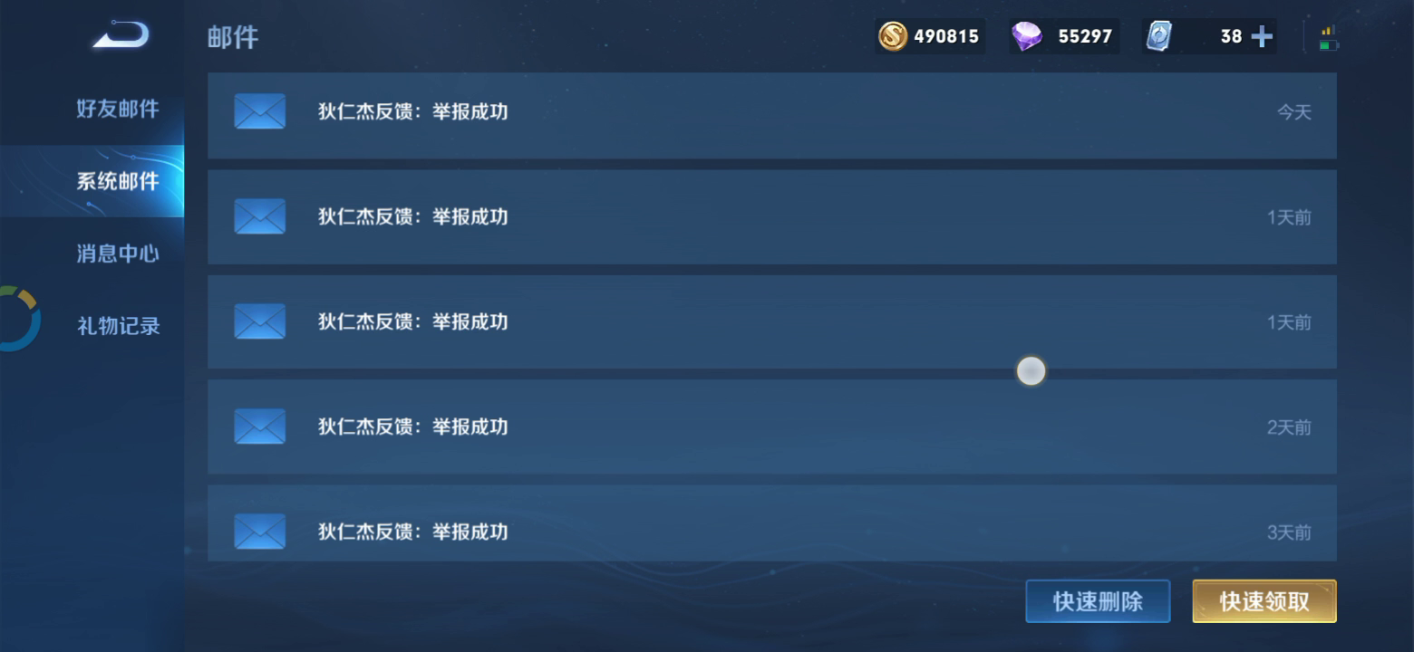 关于我邮件的动作逻辑: 由于我有收集癖(背包已满):“举报成功”的不打开;;“同局违规玩家处罚告知”的爱开不开;;“举报结果反馈”举报成功的就留下来计数,没成功的就删掉。 以上🙄 . 日期8-8,玩了4局,2输2赢,其中3局举报成功了。 对局举报率达到75% 当日共计5人被举报。3队友,1对手,还有1个是我... . 日期8-9,玩了4局,3赢1输,其中3局举报成功了 对局举报率达到75% 当日目前共计举报成功了4个人,2队友,2对手。 ———————————— 以上说的事,全部截图在如下帖子的40~46楼。 S28赛季,新的举报楼!! - TapTap https://www.taptap.com/topic/21017030 ———————————— 安卓Q区战绩可查,无P图。。可直接加来问那些人,他们是不是被扣分了! ———————————— 再其余的相关链接: 情迷大乔——机械程序错乱;男人头昏脑胀;猪头撸到耙断 - TapTap https://www.taptap.com/video/2865866