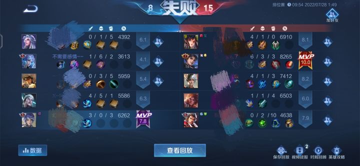 我“四辅助能重开,我有经验,相信我”两个憨憨“不用重开!😎👍”然后我反手把他们给举报了。。😒👍。。。。。。赢的时候不要笑我评分第五!因为我输的时候,没人会可怜我评分第一。。😒💢
