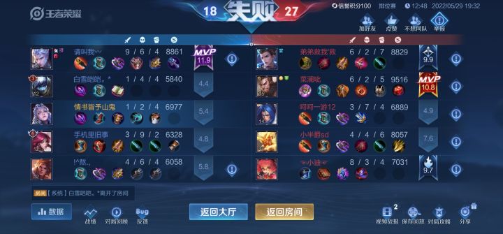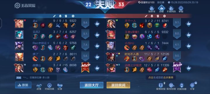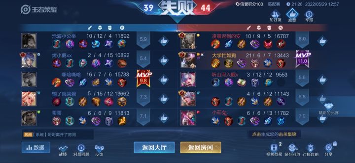 就,不是很能理解,我一个小星耀打晋级赛,这些情侣你们一起骂我能理解,毕竟向着自己人嘛,但是你们开局连体,我一个下棋的跟昭君和鬼对线,辛苦清完线,看到对面边路貂蝉漏了个标,我抓他有问题吗?完事后自己带的辅助不会看视野,二技能只等射手来了才给,辛苦蹭到两个二技能(全局就吃到俩)加速清个线,好家伙,“呵呵,打的不错”大抵是上辈子欠了什么债,遇到这么无语的队友,别把不属于这个段位的人带到这里,很恶心。