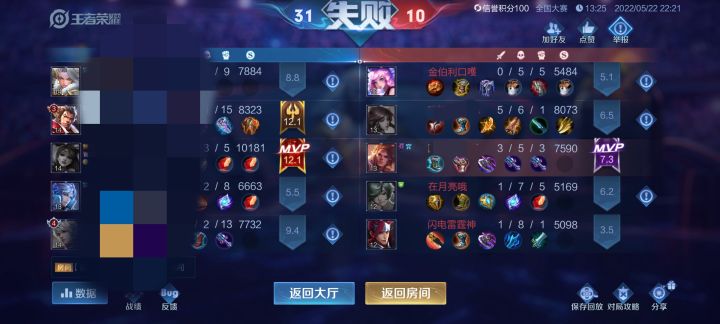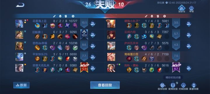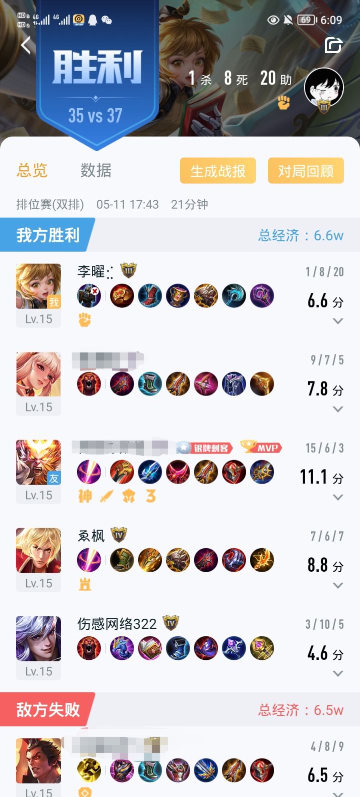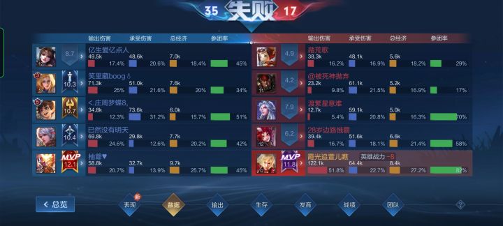 百分之十几的输出怎么好意思玩射手啊?我就随便找最近打的几局基本都这样。看完他们的,看看我刚打的一局。不得不说,蒙犽打艾琳真的好打,他有小明我有瑶,站撸她完全火力压制。