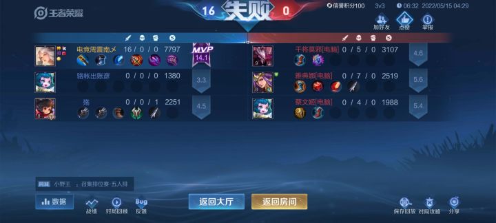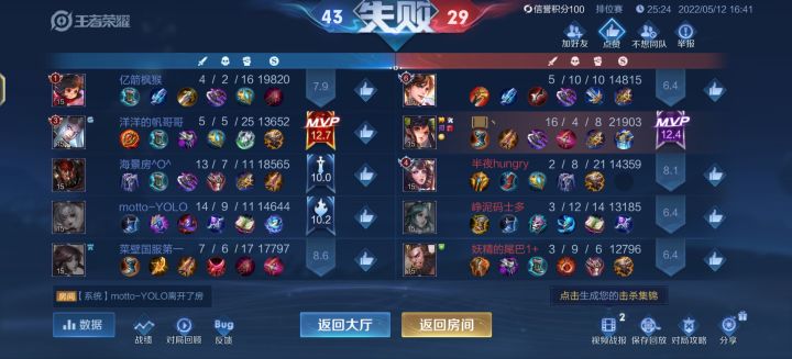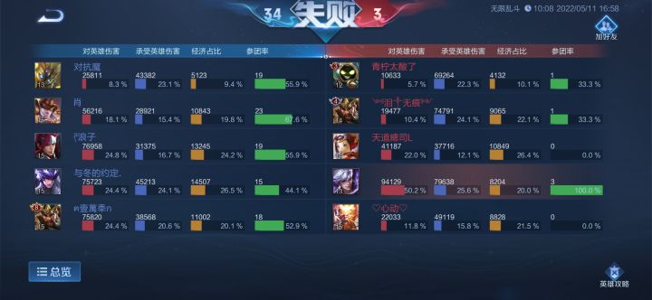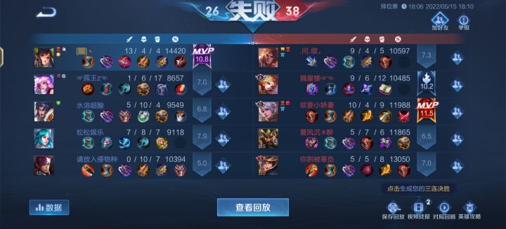 晚上八九点钻石局匹配两分钟多才有队,一进去就去全员摆烂,一排绿豆,还抢位置,好好打每次前期发育挺好,莫名其妙就输,连着输然后机制再让你莫名其妙的赢一把继续输,这排位我赢了我也不快乐。