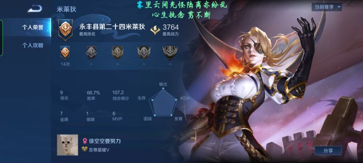 我是真的要被这游戏恶心吐了,每个赛季都只有47左右的胜率,这个赛季第一个星期上王者了,结果现在我居然是星耀,呵呵,我这个号借我一个荣耀的朋友玩了几天,结果他拿着我的号在星耀局也一直输,真就针对老玩家号呗,老玩家用来养新玩家?