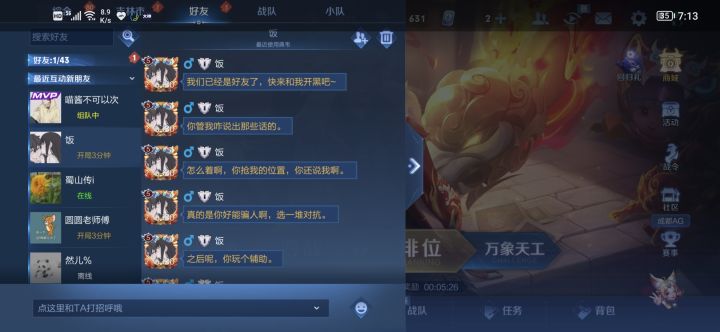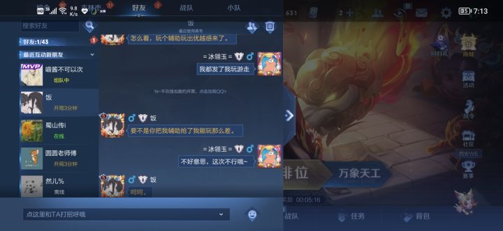 这个叫饭的。我必须让他火一次说我备选全是对抗路,来,墨子,王昭君,金蝉和鲁班大师,哪个是对抗路?说我把他辅助抢了。我tm就是游走位的。我开局就发了我玩游走,还说我抢位置。哈哈哈哈哈哈这就是钻一局,哈哈哈哈哈