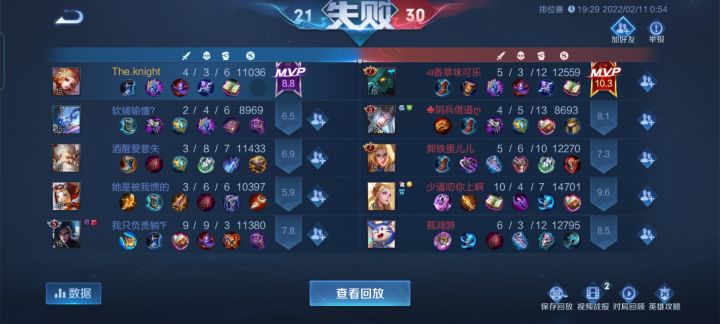 分享一下凌晨排位遇到的家伙我当时打的时候没注意他说的几句“男的xxx”挺膈应的这种发言 我也是第一次打游戏见到从女生嘴里说这样的话 好笑的结算评分他最低 举报成功——哈哈哈哈哈 这玩意竟然还能有后续(不是)依旧是凌晨那会 我跟室友双排 就是很巧的 又遇到了哈哈哈哈哈哈哈哈 还是那个熟悉的小乔 但是他这一整局都没说话 怀疑是不是被禁言了 真的好离谱哈哈哈