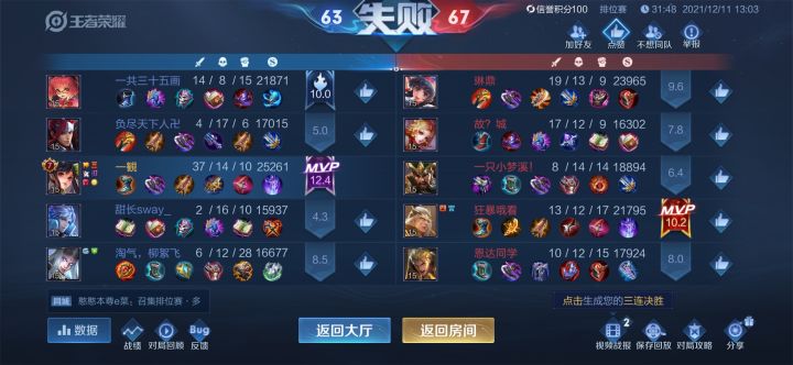 有些时候真的很无力,进游戏一看队友的走位就知道这局要输了,想努力打但必输局真的没办法,好不容易自己打出来一点优势结果队友一直在送根本就不想好好玩,遇到这种给你匹配练英雄的人是真没办法赢,有些人被系统认定为菜比还不知道,比如这个镜和亚瑟,这才是最可悲的