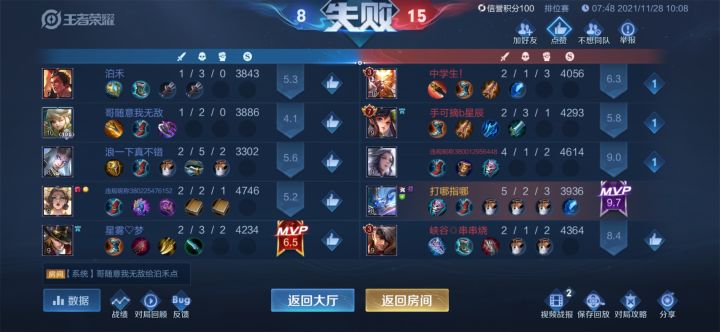 深惨啊。。。堂堂一个败方MVP、充了钱有嬴政的人、被队友开麦辱骂家人。。4个队友、有一半可以被举报扣分成功,那你说怎么办?局内点了语音举报了,等系统邮件、看看是哪个人在骂我吧。。希望能够审判成功,扣他的分分