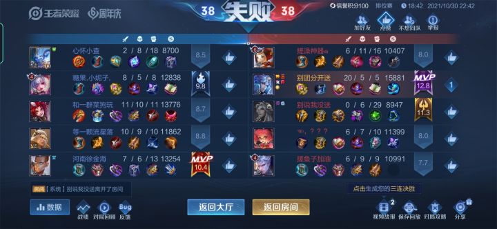 也不知是健康系统升级的原因,还是联盟出手游的原因,这段时间上分真的是好难,不得不说匹配到的队友可能是大叔大婶更多的应该是女大学生,这些人操作意识还比不过小学生好吧,不会玩还要抢位置,没得玩了真的是。玩王者也有五年了,正式退游。这匹配机制和队友真的是能恶心死我。再见👋🏻