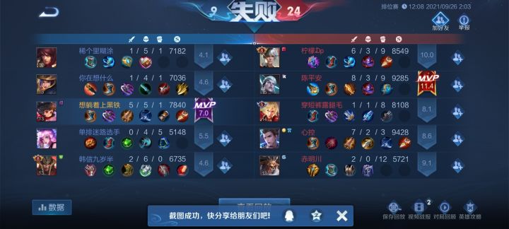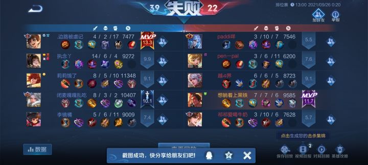 好多人都说你们的队友是演员,他们起码也有数据吧,看看我这个优秀的队友,鲁班大师直接半局挂机,赵云的话,3%的输出,可能有些牛马,只看到我和守约的1-5,1—6,但是起码我们两个认真的在打游戏,就这,演了也就让他们演了算了,但是你让我举报成功好不好?真的是恶心,一会游戏直接让我戒游戏。