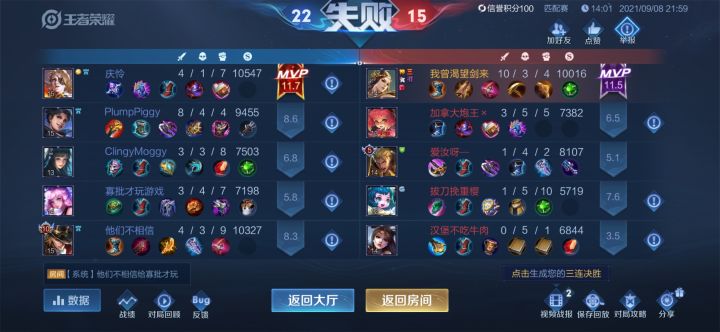 我专门练英雄,在选人界面是就和队友说好了,大家也都有数,没反对,一直输了好几局,结果他就给我匹配人机,来“哄”我恶心🤢。我公孙离很菜,又爱玩,好不容易买到限定蜜橘之夏,想把熟练度打上去,平时都是要匹配打发时间,也都有和队友说我的水平不行,一直输也没关系,还会和对面扯皮聊天,结果你个王者还特地安慰我PUA让我沉迷你?这游戏用我们训练出来的AI特地来演戏,之前一直不信,现在证据确凿,要不是我真的菜还看不出来。以小见大,王者的排位机制是什么情况,大家心里也有数。🤮