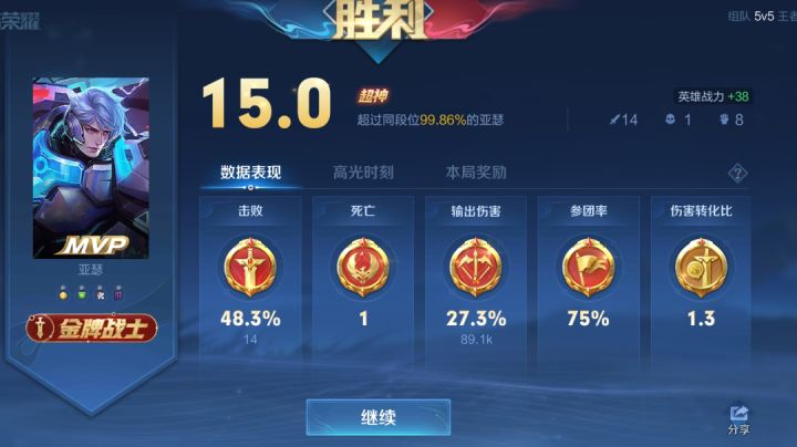 新赛季的第二把成功升到钻三三颗星,同时打完晚上睡的很香