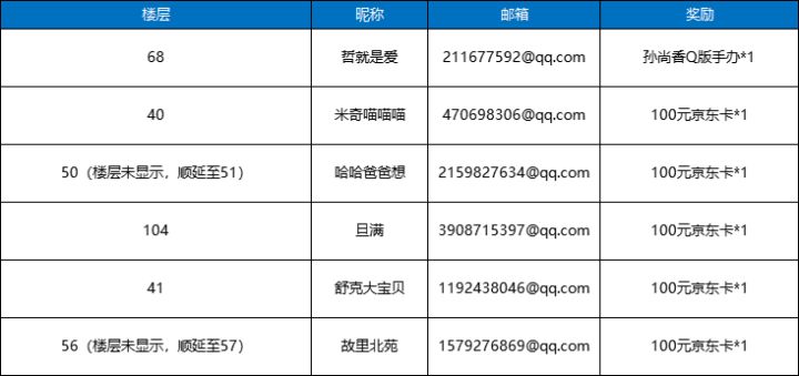 亲爱的召唤师们:【有奖活动】新赛季到来,孙家又添一员大将,晒全家福赢福利!已经圆满结束啦,感谢大家的热情参与~原活动贴链接:https://www.taptap.cn/moment/691292221101572488现在就为大家公布本次活动的获奖名单~随机抽取情况如下图所示:恭喜以上召唤师啦~没有获奖的小伙伴也不要灰心,多多关注我们说不定下个获奖的就是你哦~获得实物的召唤师,请于7月