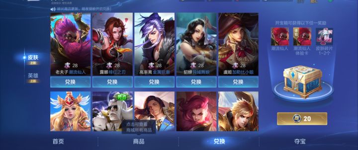 商城里的兑换商店多久更新一次啊?都有哪些皮肤可以用碎片兑换啊?有大佬能告诉我一下吗?
