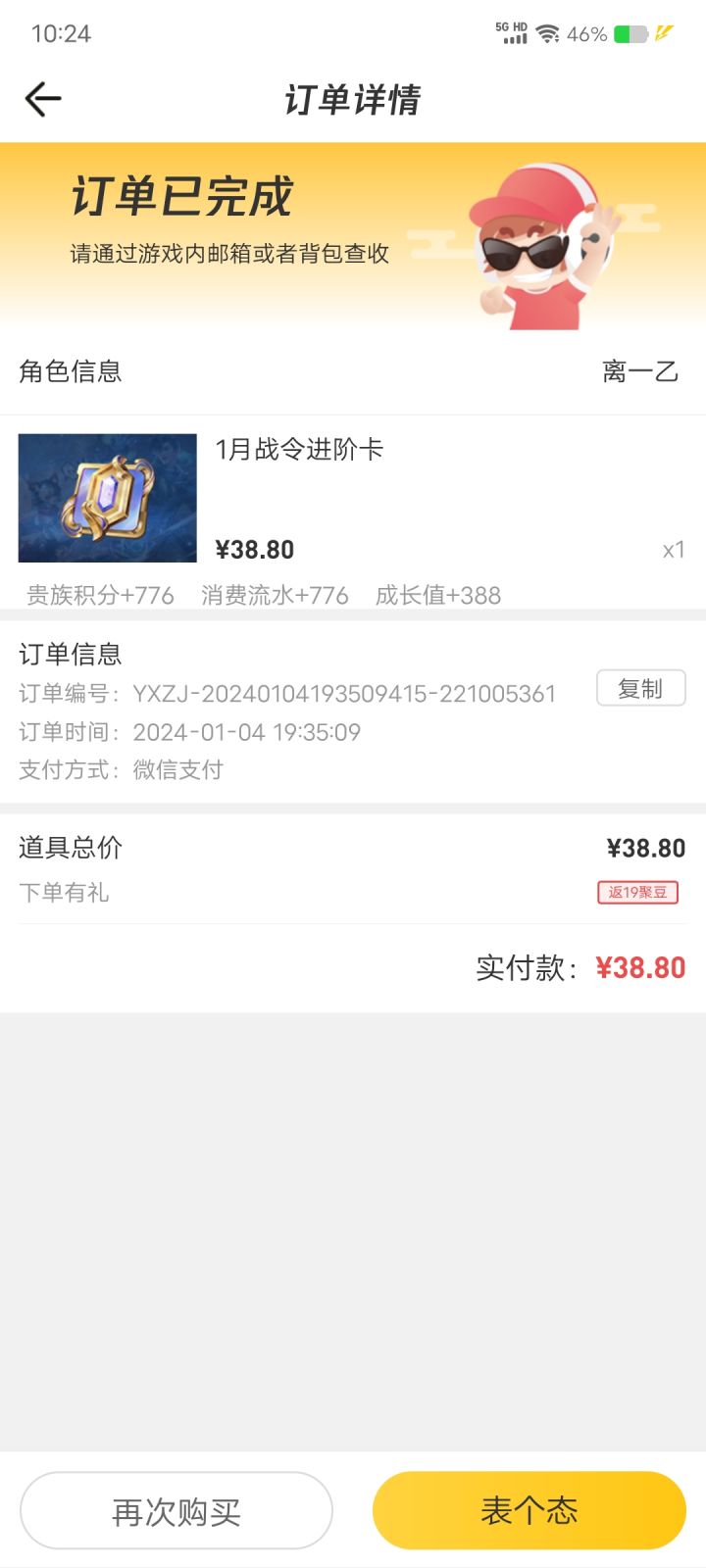 道聚城买的战令没到账