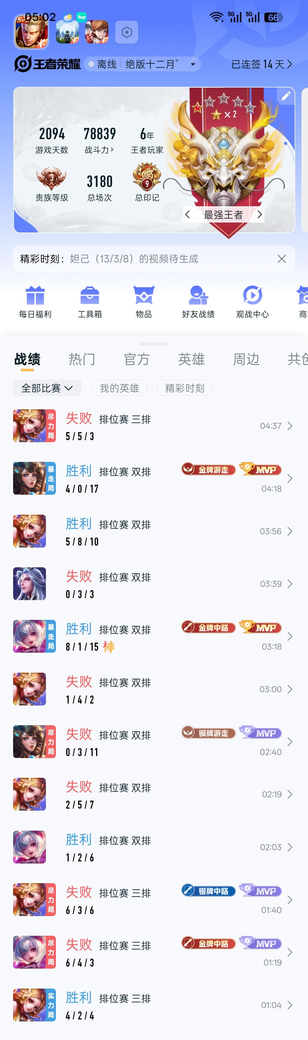 每次跟王者较劲都较劲不过去 这破王者我两天一共打了26局 一共赢了10局 输了16局 光今天凌晨(1点)打到现在(4点多快5点)一共玩了12局 我就赢了5局 我想请问一下 这王者还能玩吗?