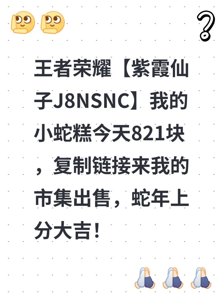 王者荣耀【紫霞仙子J8NSNC】我的小蛇糕今天821块,复制链接来我的市集出售,蛇年上分大吉!