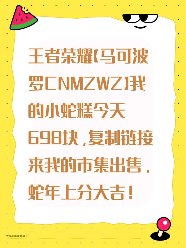 王者荣耀【马可波罗CNMZWZ】我的小蛇糕今天698块,复制链接来我的市集出售,蛇年上分大吉!