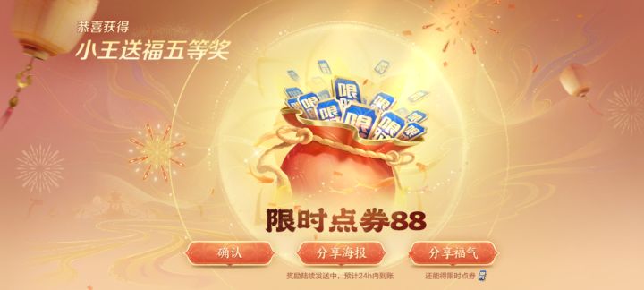 王者荣耀送限时点券啦!复制我的福气码【特工魅影MTQ2VJ】前往活动,参与小王送福中大奖!