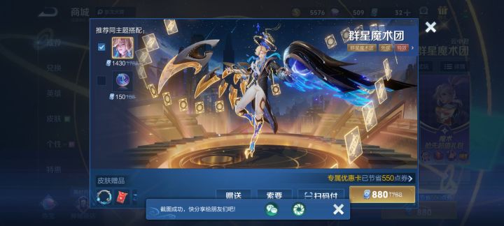 微信区 云中君群星魔术团皮肤550优惠券有人要的话可以找我要,免费送人呢自己也不玩云中君#游戏日常