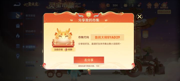 王者荣耀【鲁班大师SYAD29】我的小龙糕今天820块,复制链接来我的市集出售,龙年上分大吉!
