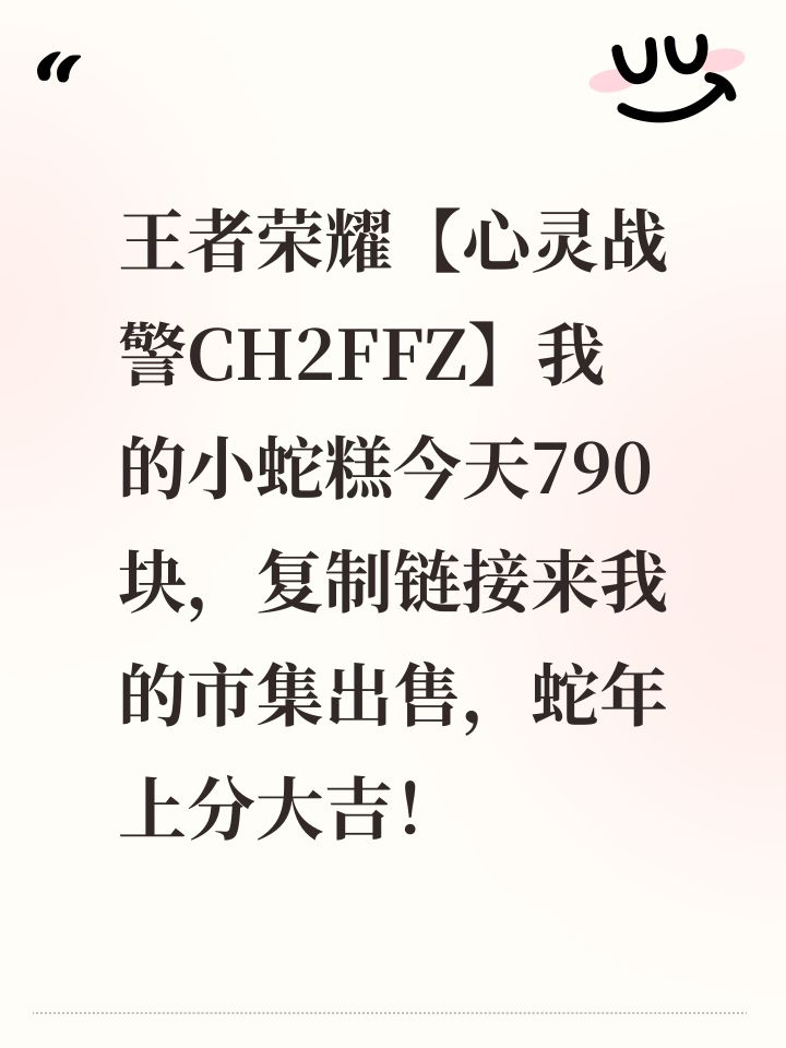 王者荣耀【心灵战警CH2FFZ】我的小蛇糕今天790块,复制链接来我的市集出售,蛇年上分大吉!
